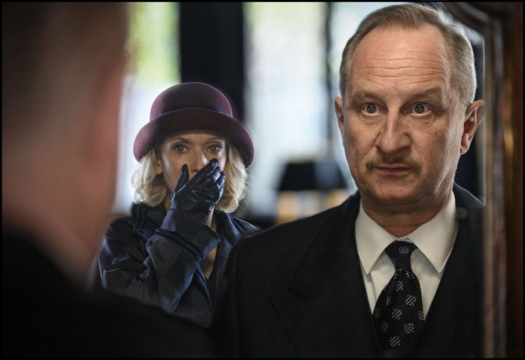 C’est donc directement la suite du magnifique film d’Albert Dupontel sorti en salle en 2017 avec le succès mérité que l’on sait. Nous sommes à présent en février 1927. Marcel Péricourt (Niels Arestrup dans l’opus précédent) vient de mourir. Ses obsèques grandioses vont être l’objet d’une scène épouvantable. Se jetant d’une fenêtre, son petit-fils, Paul, s’écrase sur son cercueil. Il n’en mourra pas mais restera paralysé. L’ouverture du testament de Marcel Péricourt nous permet de faire connaissance avec la famille et des proches de ce richissime banquier. Sa fille, Madeleine (Emilie Dequenne dans l’épisode précédent) se retrouve à la tête d’un empire dont elle ne connaît absolument pas la technicité et encore moins les rouages et autres chausse-trapes. Heureusement Gustave Joubert (Benoît Poelvoorde, machiavélique), le Fondé de pouvoir de Marcel Péricourt, l’assure de tout son soutien. Un soutien qu’il aimerait d’ailleurs beaucoup plus…intime. Mais Madeleine refuse. De colère, ce dernier va la précipiter vers une faillite retentissante.