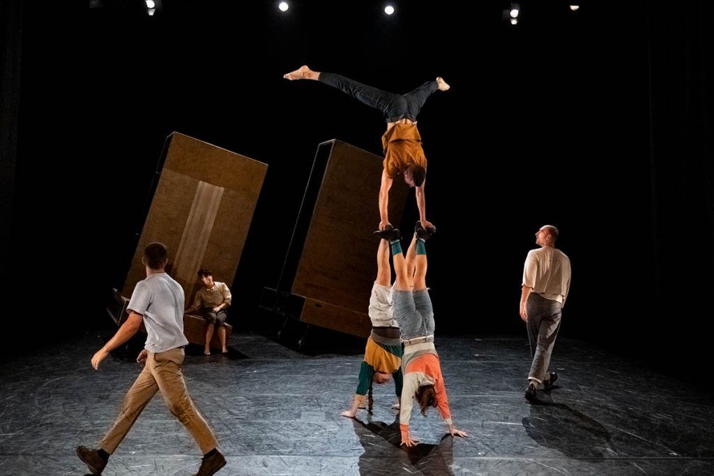 Nuye est une pièce de cirque et chorégraphique pour six acrobates qui naît de l’exploration des relations dans le couple ou le duo !