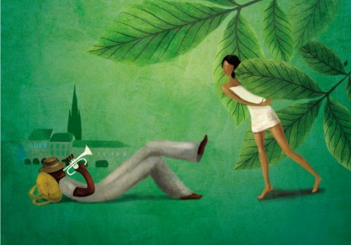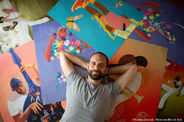 Les affiches que je réalise sont souvent directement inspirées de ma vie. Il y a souvent un petit clin d’œil à ce que je vis. Par exemple, l’affiche de Jazz in Marciac pour l’édition de 2009 – représentant un couple – célèbre la rencontre avec la femme de ma vie, Isabelle, qui est aussi directrice artistique et m’accompagne dans chacune de mes créations. Nous aimons échanger, voire nous triturer l’esprit !