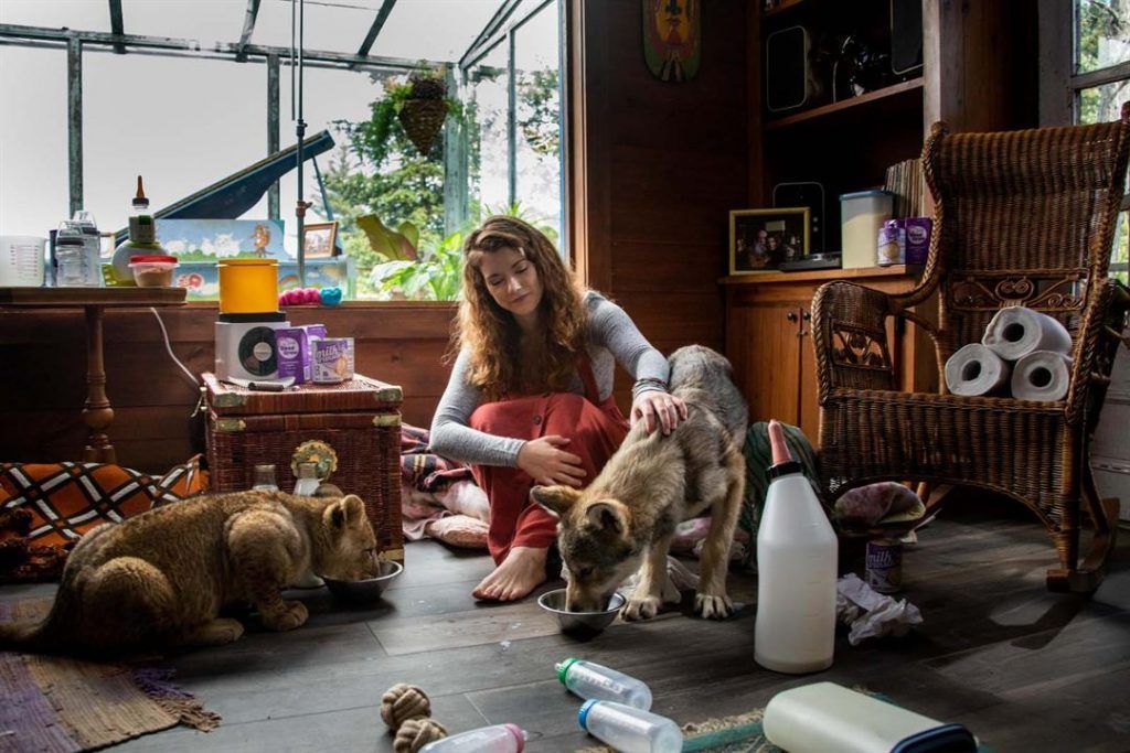 La scène liminaire nous met dans les pas d’un contrebandier ayant passé un contrat avec un cirque pour un lionceau. La tragique capture ayant eu lieu, le jeune félin est amené par avion à sa destination, au Canada. Survolant une région particulièrement sauvage, l’avion est pris dans une tourmente et s’écrase non loin d’une île en plein cœur de la forêt. Cette île appartient à une jeune musicienne, Alma (Molly Kunz). Son grand-père vient de la lui léguer juste avant de disparaître. Alma en prend donc possession en compagnie de son parrain. C’est en se promenant dans son nouveau domaine qu’elle rencontre, tout perdu et affamé, le lionceau de quelques semaines. Comment ne pas craquer devant une pareille peluche ? Derechef adopté, le lionceau prend ses marques dans la petite maison. C’est le moment que choisit une louve pourchassée par des scientifiques pour y transporter, afin de le protéger, son tout petit louveteau. Entre les deux bébés, l’entente est immédiate. D’autant que la louve allaite les deux gosiers insatiables. Malgré l’avis de son parrain, Alma va garder les deux animaux qui vont grandir dans une fraternité étonnante. Mais voilà, le pilote de l’avion n’est pas mort et veut récupérer le lionceau, aujourd’hui un vrai lion. La police s’en mêle mais Alma a de la ressource et après bien des péripéties…