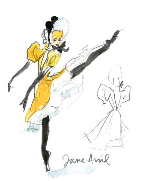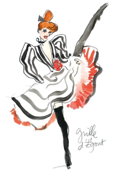 Les costumes ont été dessinés par Oliver Bériot. Il dessine des silhouettes grises, comme des photos de rue en noir et blanc qui seraient recolorisées, et d’où vont surgir des personnages forts, des filles qui vont se créer chacune sa personnalité. La Vachalcade [Fête montmartroise animée par des cortèges et un défilé de chars à thème NDR] qui devient dans le ballet la Chavalcade, fera éclater la danse dans une grande fête où le french-cancan sera roi, dans un tourbillon de dentelles.