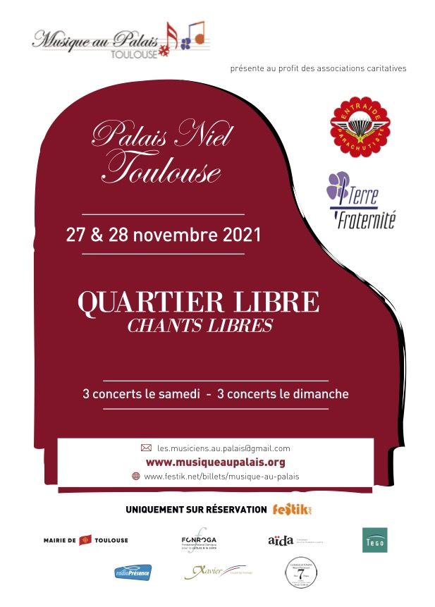 Après une pause en 2020 imposée par la crise sanitaire, 2021 marque le retour de Musique au Palais dans l’agenda musical classique toulousain. Le week-end des 27 et 28 novembre, le festival placé désormais sous la présidence et la direction artistique de Serge Krichewsky va connaître sa 6e édition au Palais Niel. Un cadre somptueux à l’acoustique exceptionnelle pour cet événement à la double vocation, artistique et caritative, qui réunit grands amateurs, jeunes élèves de conservatoires (CNSM, CRR) et musiciens professionnels accomplis faisant une carrière nationale, voire internationale. Le festival 2021 reste fidèle à cette formule originale avec une programmation Quartier libre, chants libres propre à ravir tous les amoureux de la belle musique de chambre européenne.