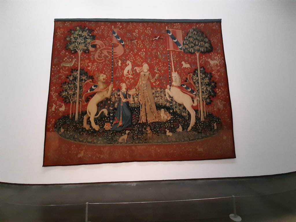 Parmi ces œuvres, cinq d’entre elles représentent un sens l’ouïe, l’odorat, le goût, le toucher, la vue). La sixième “Mon seul désir” quand elle laisse place à l’interprétation.