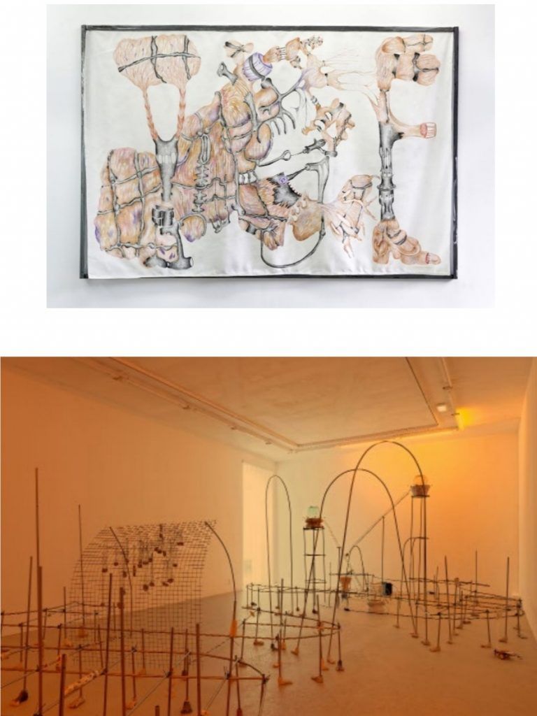Concernant les oeuvres exposées des lauréats de 2021, Naomi Maury propose une nouvelle installation sensorielle immersive mêlant les techniques, les matières, les objets, la lumière et les sons. L’espace réalisé sera hors du temps laissant le visiteur déambuler et se questionner sur les paradoxe de la vie, de la société, sur le perception d’un corps soutenu par une prothèse, sur le soin et la connexion des espaces vivantes ou non-vivantes. Quant à Jimmy Richer, il va prolonger sa réflexion sur un travail engagé depuis depuis plusieurs années « Ni plat, ni sphère ». En partant de l’imagerie naturaliste du XVIIIe et du XIXe siècles, l’artiste entreprend un travail de déconstruction de la classification pour mettre en exergue le génie naturel. Les espèces deviennent hybrides, composites, représentatives du maillage territorial et le trait exprime les forces vives de la nature. Tout en travaillant sur les codes de l’imagerie qui les composent (illustration scientifique, ligne claire de la bande dessinée, gravure, imagerie de littérature) le dessin devient ici une manière d’exprimer la liaison entre un discours scientifique et une représentation animiste. La scénographie présente une série de dessins et fresques in situ.