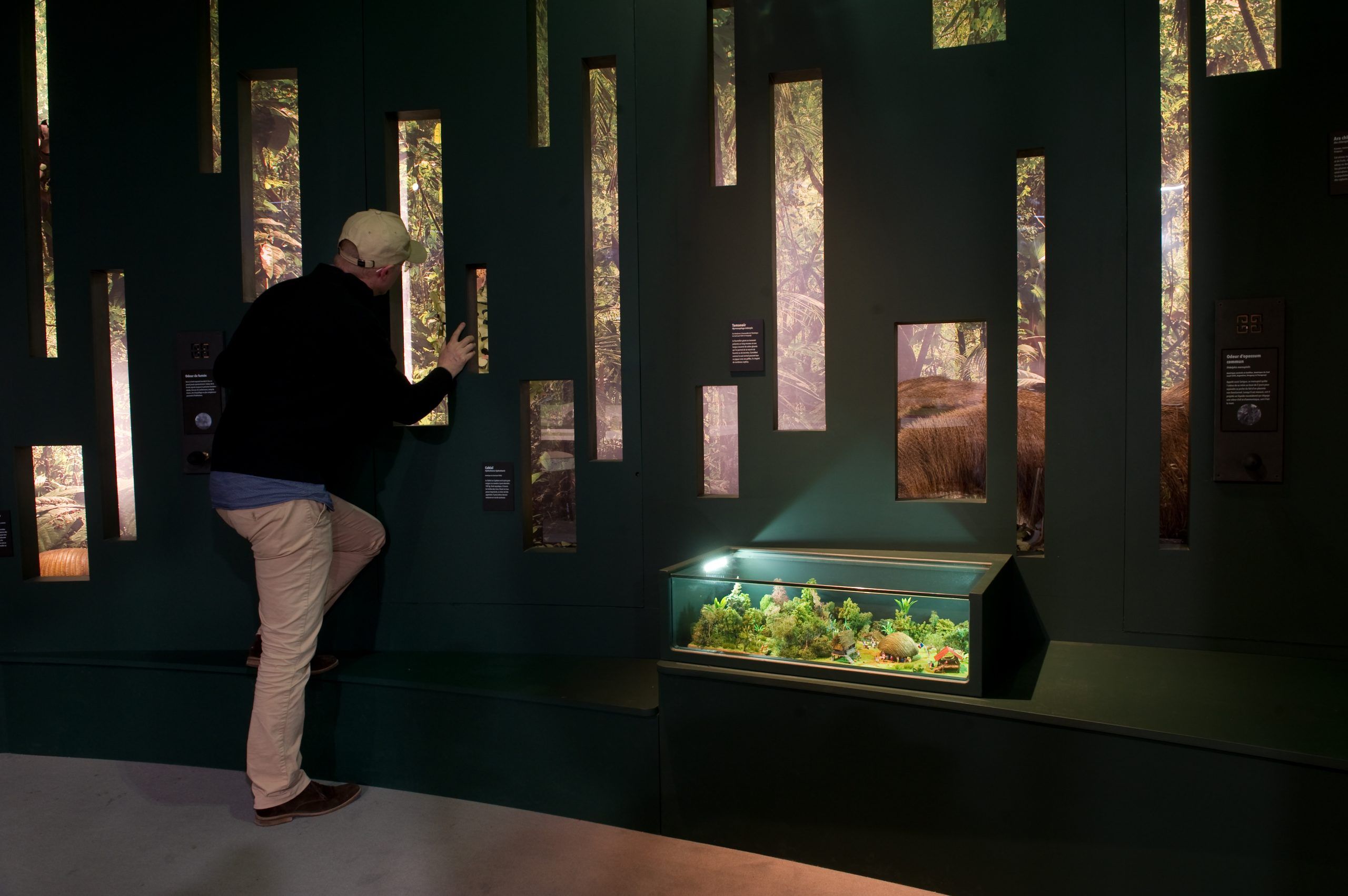 Dans un court-métrage d’animation, les visiteurs peuvent faire la connaissance de deux personnages, l’un amérindien, l’autre occidental, expliquent leurs deux conceptions de l’univers, l’une animiste, l’autre naturaliste. Cette plongée dans un monde spirituel qui régit la vie des populations de toute l’Amazonie se poursuit par d’étranges petites scènes en ombres chinoises dévoilant des mythes qui expliquent l’origine des plantes cultivées, l’acquisition d’une technique de pêche très particulière ou l’apprentissage de motifs d’ornementation. Le visiteur, entouré d’objets comme des ustensiles de cuisine pour le manioc, des arcs et des flèches, des animaux naturalisés (toucan, singe hurleur…), un nécessaire de tatouage ou différentes coiffes, entre alors concrètement dans la vie de ces peuples de la forêt amazonienne. Dans un monde peuplé d’esprits, de mythes, de dialogues permanents entre l’homme et la nature.