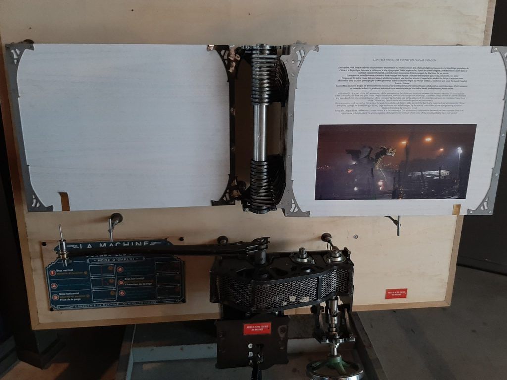 Pour avoir une vision globale de ce projet, « du 19 février au 8 mai, nous proposons une exposition qui raconte ce défi. La présence de Long Ma comme sculpture au sein de la halle est dans le fil et le sens de cette exposition. Ce que nous proposons à la halle, ce n’est pas que des expositions, mais c’est également de passer derrière le rideau et de montrer la fabrication du théâtre. Comment à travers un assemblage de matières a priori inertes lorsque nous les mettons en mouvement, nous créons du théâtre, mais aussi de l’émotion ». Ainsi, dans cette exposition, il est possible de découvrir des photographies, des films. Mais également les premiers croquis de François Delarozière, une maquette au 1/10e réalisée puis modelée en 3D pour livrer une étude de faisabilité, adapter chaque pièce, déterminant son volume, l’amplitude de ses mouvements. Chacune des étapes est décrite et documentée afin d’éclairer les spectateurs quant aux différents enjeux de chacune d’entre elles, depuis la phase de création, sa fabrication dans les ateliers, jusqu’à la production et les représentations dans l’espace public.
