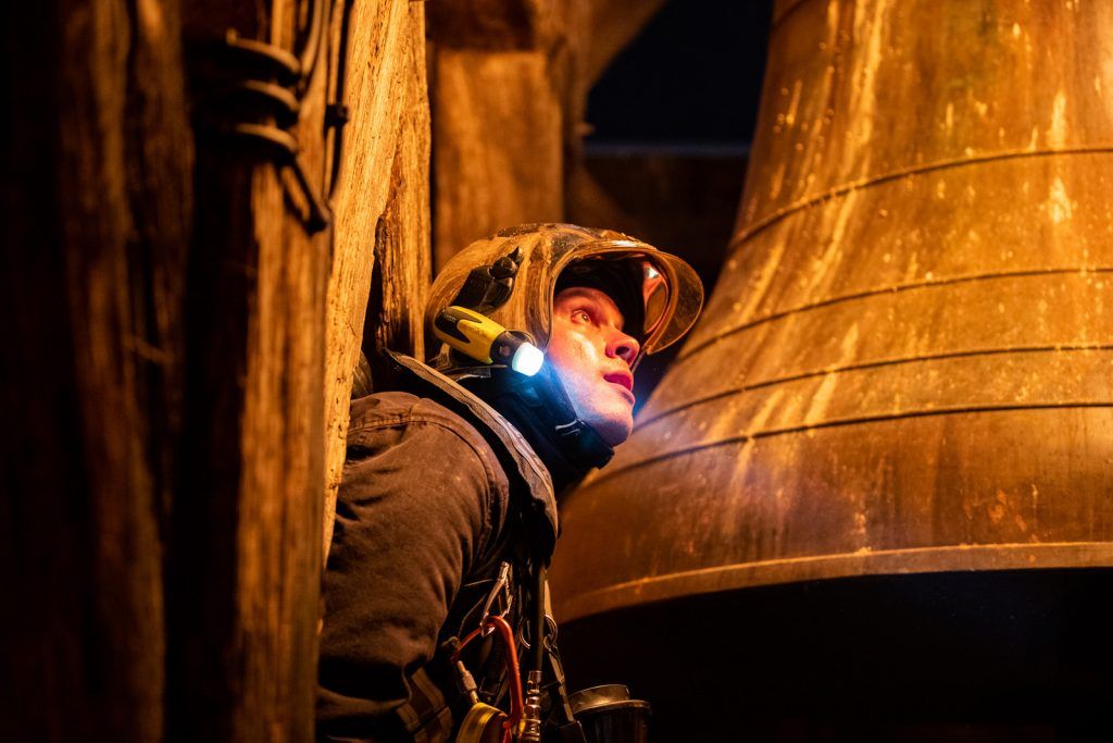 Associant vidéos amateurs récupérées, en particulier concernant les embouteillages parisiens au moment du drame, et tournage en studio mais aussi dans les cathédrales de Sens, Amiens et Bourges ainsi que dans la basilique Saint-Denis, nous voici au cœur de l’incendie, sur les pas des pompiers. Hyper documenté sur cet événement, notamment auprès des témoins-acteurs de cette folle journée, Jean-Jacques Annaud nous offre un véritable thriller. Bien sûr nous connaissons le dénouement mais le sujet ici est plutôt le formidable engagement de ces fameux soldats du feu, leur courage, leur abnégation, leur refus téméraire de laisser ce monument disparaître.