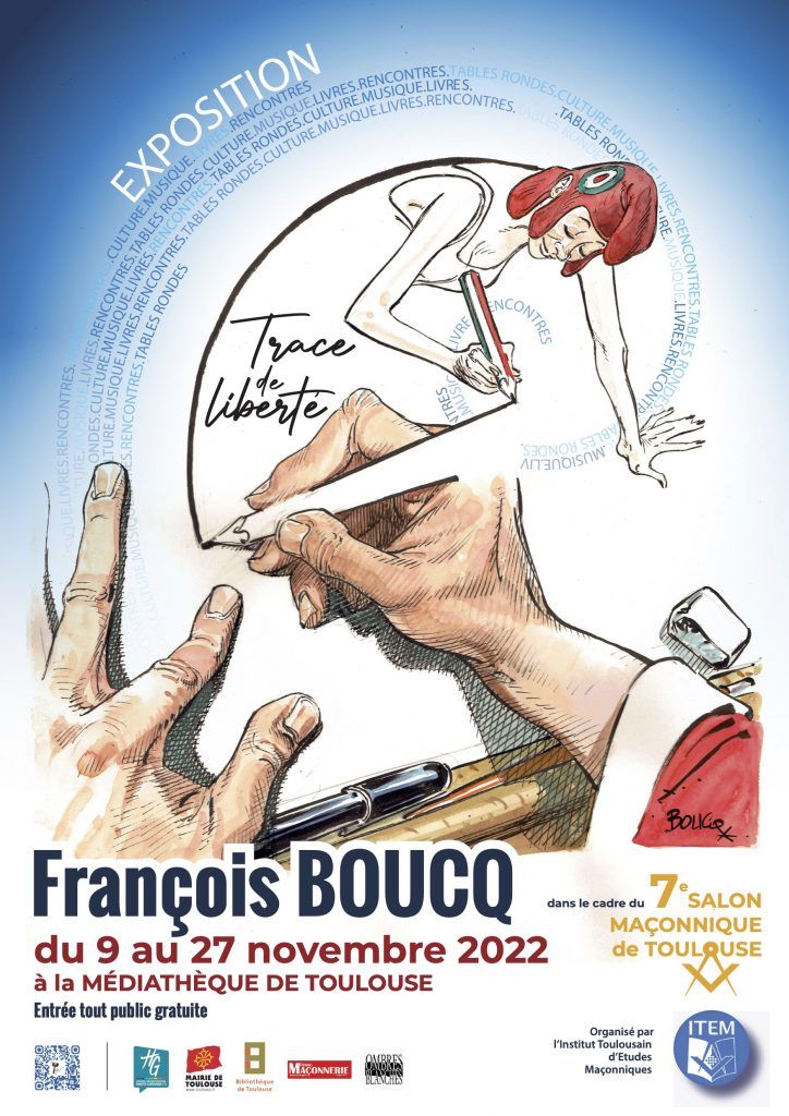 C’est dans le cadre du 7ème salon maçonnique de Toulouse, qui se déroulera les 26 et 27 novembre, que se tient à partir du 9 novembre à la Médiathèque de Toulouse une exposition intitulée « Trace de liberté » autour de l’œuvre du scénariste et dessinateur François Boucq. La liberté d’expression sera donc au cœur de cette exposition organisée par l’Institut Toulousain d’Etudes Maçonniques qui explique le choix du lauréat du prestigieux prix du festival d’Angoulême en 1998 : « Son parcours créatif, son engagement intellectuel, la diversité exceptionnelle de son expression graphique, la pertinence de son regard critique et l’ouverture aux Beaux-arts d’une œuvre appartenant à un genre dit mineur, expriment l’ambition de François Boucq de ne négliger ni l’esthétique ni les problèmes sociétaux. »