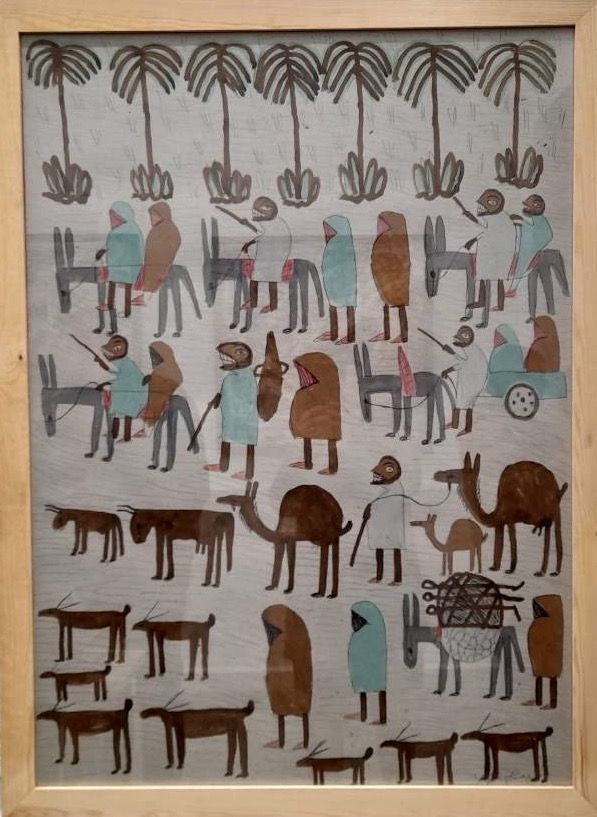 Mais le plus étrange est sans conteste Ali Maimoun qui fut berger, dont l’art tribal s’apparente et puise ses racines dans les mondes africains et berbères. Ses créatures hallucinées, hallucinantes pourraient presque nous engloutir…