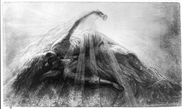 Invoquons l’assistance de tous les dieux païens ou pas pour que nous puissions profiter, sans une seule bruyante incongruité, des dix minutes du Prélude qui ouvre cette partition wagnérienne. D’ailleurs, au sujet de ce Prélude, et en partant du tableau mythique, et mystique Le Moine au bord de la mer, du peintre allemand Caspar David Friedrich, de 1808-1810, notre Directeur musical Christophe Ghristi nous disait tantôt : « …de la même manière, il n’y a, dans le vaste prélude de Tristan und Isolde, rien à écouter. Mais nous pourrions avoir les oreilles coupées {référence aux commentaires du journaliste berlinois Kleist à la découverte du tableau} que nous l’entendrions quand même. Émergeant lentement du silence, semblant tout d’abord hésiter à se déployer, une secousse de l’orchestre lui fait soudain occuper tout l’espace. Il pénètre le corps entier et s’en empare implacablement, grande vague haletante, d’abord accordée à notre respiration puis progressivement nous enchaînant et nous forçant à nous accorder à la sienne, plus lente, plus ample, plus profonde. S’élevant sans cesse vers des hauteurs toujours nouvelles, d’abord crues inaccessibles, retombant puis se relevant, la musique ne desserre jamais son étreinte. C’est cette musique-là que semble entendre Baudelaire visionnaire évoquant le plafond de brume ou le vaste éther sous lequel il met la voile. » Plus tard, de son tableau, Caspar Friedrich dira : « À l’eau est mêlée une incompréhensible lumière. »