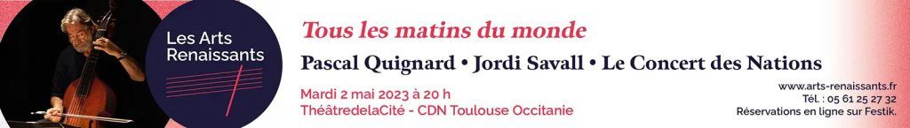 La saison du 40ème anniversaire des Arts Renaissants s’achève sur un feu d’artifice musical. Le 2 mai prochain, au Théâtre de la Cité – CDN Toulouse Occitanie, Jordi Savall et son ensemble Le Concert des Nations célèbrent le 30ème anniversaire de la sortie du film d’Alain Corneau d’après le roman de Pascal Quignard, Tous les Matins du Monde.