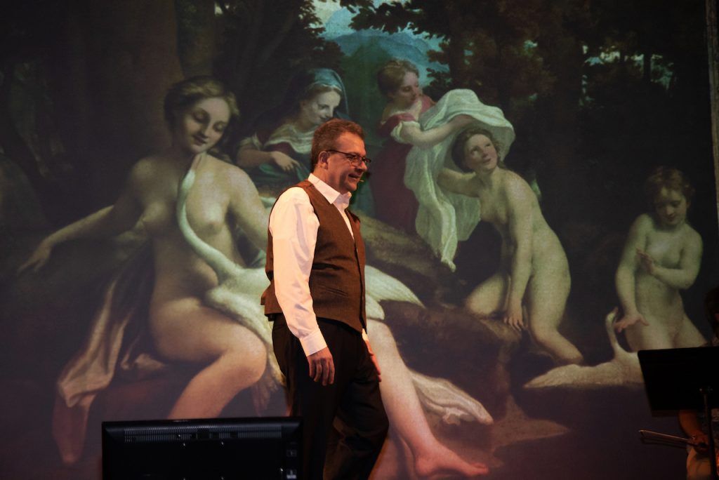 Toute l’histoire de la peinture en moins de deux heures, c’est le défi que relève Hector Obalk, vendredi 30 juin à 20h à l’Auditorium Padre Pio de la Cité Saint-Pierre à Lourdes. Entouré des musiciens Yaïr Benaïm (violon et violoncelle) et Éric Villeminey (violoncelle), ce critique d’art et vulgarisateur éclairé propose une sorte de stand-up musical érudit et hilarant où le public est immergé dans l’histoire de la peinture occidentale grâce à des images projetées sur écran géant. Pour apporter sa contribution à la cause que défend le festival, Hector Obalk a mis un accent particulier sur des peintres qui ont dû composer avec le handicap et modifier leur technique picturale pour continuer leur travail de création : Monet, Matisse et le Titien.