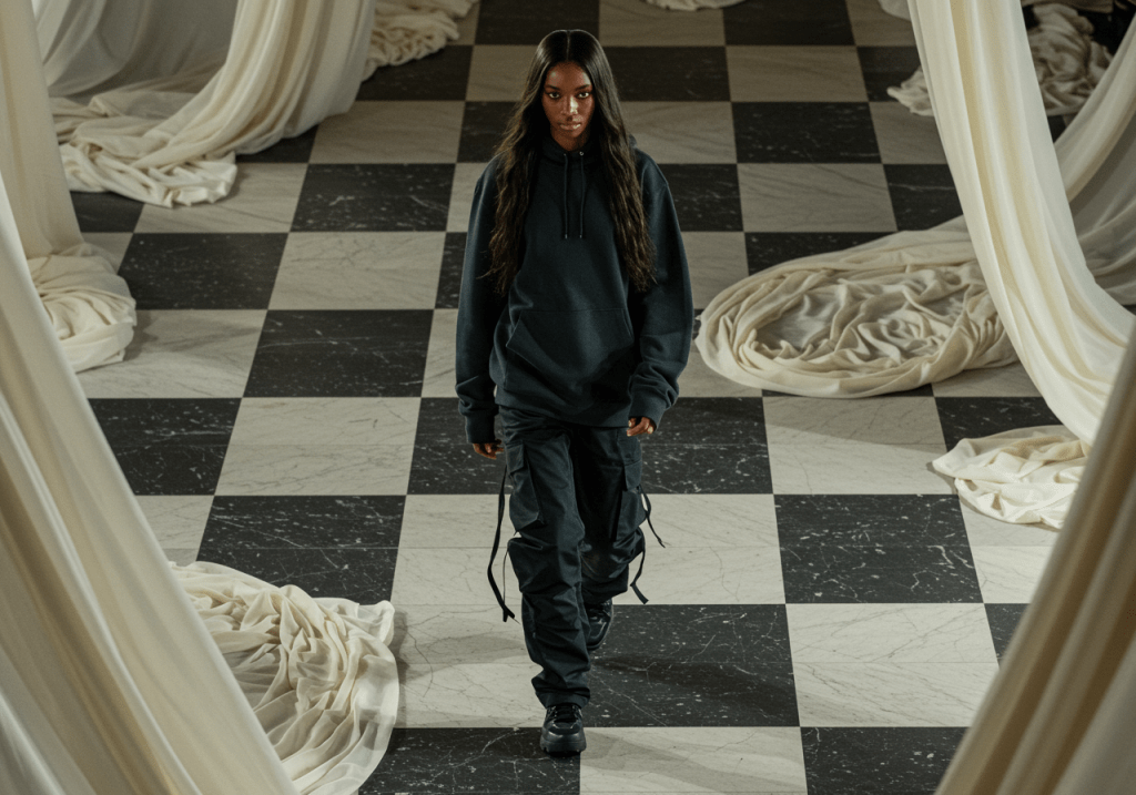 Le décor est inspiré par l’univers de la marque TrendOsmose et de sa créatrice, Maria. Puisque « Le Défilé » invite un talent du monde de la mode à investir l’espace et s’exprimer librement, ici, des voiles blancs vont transformer les lieux, en contraste avec les pièces TrendOsmose. « Elle propose surtout des articles représentatifs de l’Afrique, au niveau des courbes, des couleurs, etc. En fait, c’est un mix européen et africain », décrit Diane K. Pour la Toulousaine, choisir Maria pour cette première édition a été une évidence, au-delà même de son talent, car elles n’en sont pas à leur première collaboration.