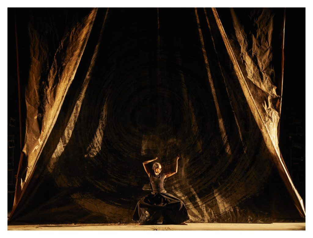Sur scène, Shivalingappa évolue au milieu d’un espace en constante transformation, autant architectural que sensoriel. La chorégraphie, nourrie par la puissance du kuchipudi (danse classique indienne) et remodelée dans une forme contemporaine, crée une mise en scène fluide où le mouvement devient la source même de la scénographie.