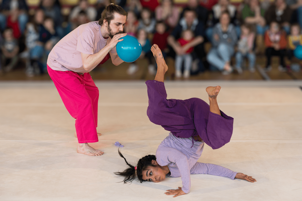 Entre acrobatie, beat-box et objets prêts à « faire boum », BAOUM ! met en mouvement un rapport au corps et à la matière conçu pour surprendre et émerveiller. L’idée de départ est simple : l’enfant qui pétille le papier bulle. Un geste familier, un plaisir partagé. « J’ai vu dans ce geste … une manière d’expérimenter et de franchir une limite, comme une recherche d’exutoire », confie Coline Garcia.
