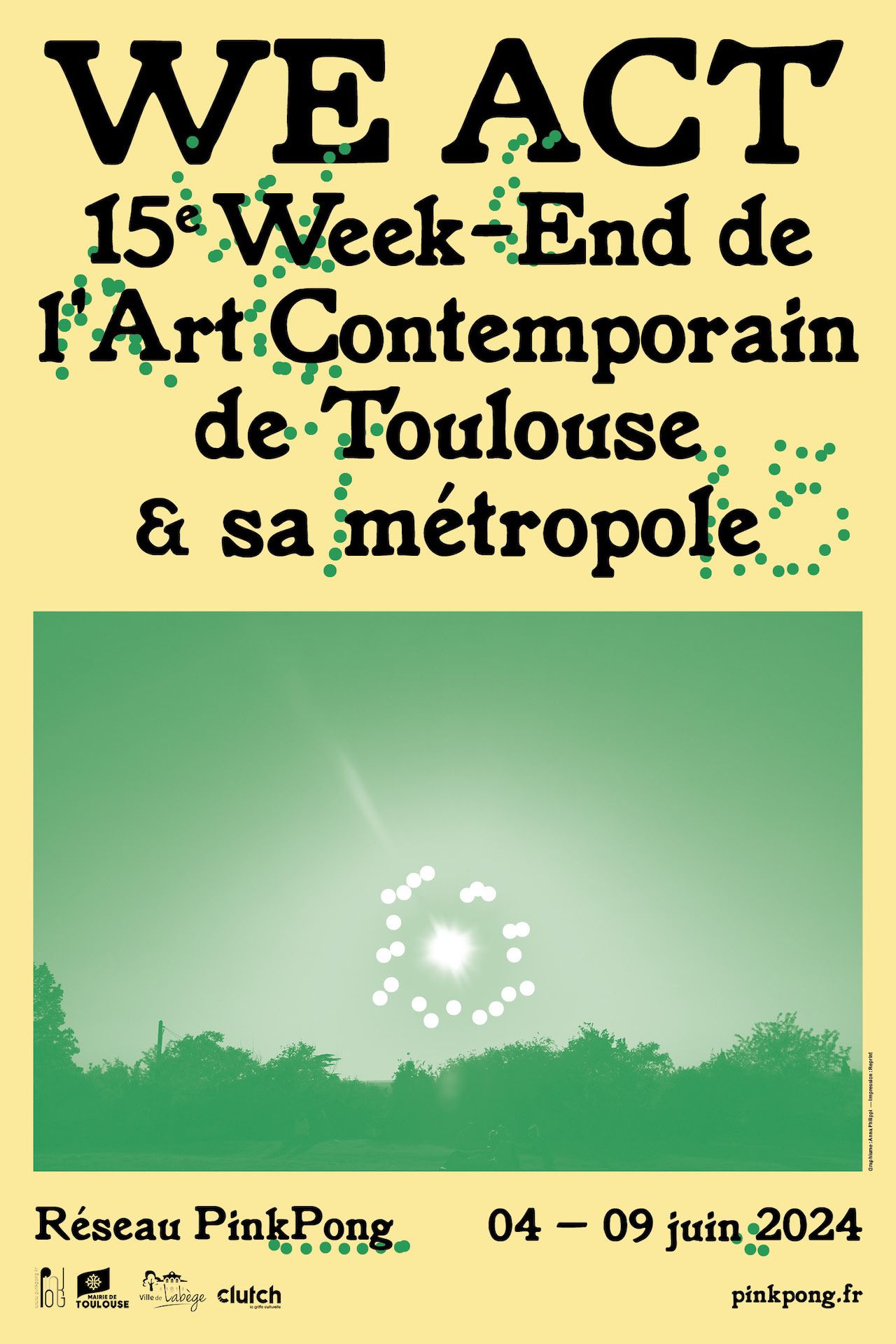 Rendez-vous artistique annuel, le Week-End de l’Art Contemporain de Toulouse et sa métropole revient pour une 15e édition solaire ☀️ du 4 au 9 Juin 2024. Fidèle à son désir de créer des liens entre les structures culturelles du territoire et une dynamique positive autour de l’art contemporain dans l’agglomération toulousaine, le réseau PinkPong vous propose d’arpenter à pied ou en bus jusqu’au coucher du soleil 🌘 la métropole à la découverte de la création contemporaine.