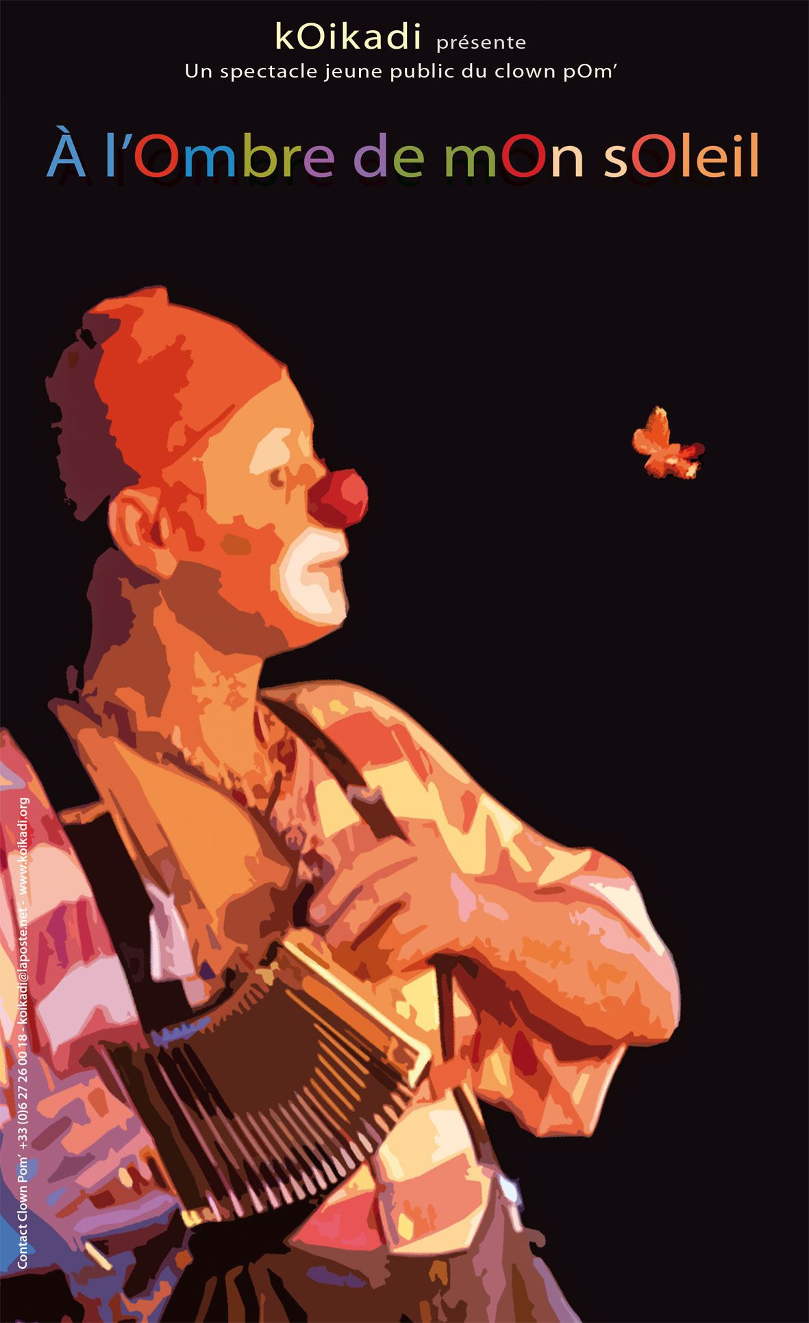 A l’Ombre de mOn sOleil, au croisement de nulle part d’un banc public, pOm’ présente, au son de son petit accordéon, son célèbre numéro animalier « La valse de Papillon ».