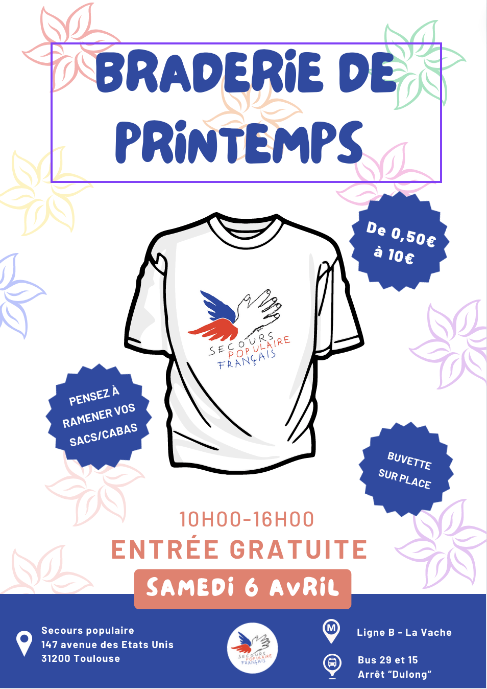 Ne manquez pas notre Braderie Solidaire ce samedi 6 avril de 10h00 à 16h00 au 147 Avenue des États-Unis 31200 Toulouse !