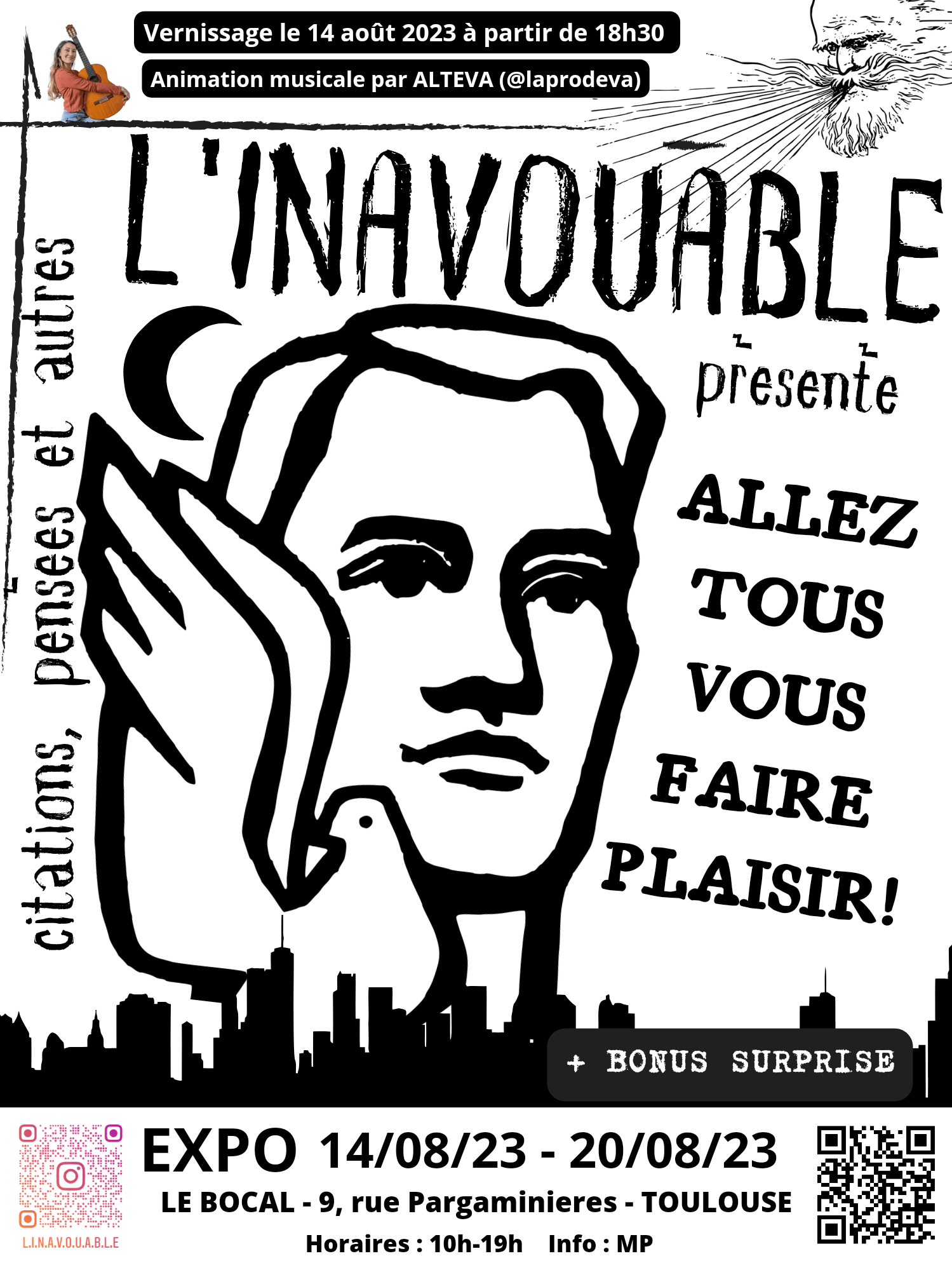 Artiste-auteur et créateur d’affiches, L’INAVOUABLE vous présente son exposition « Allez tous vous faire plaisir » du 14 au 20 août 2023.