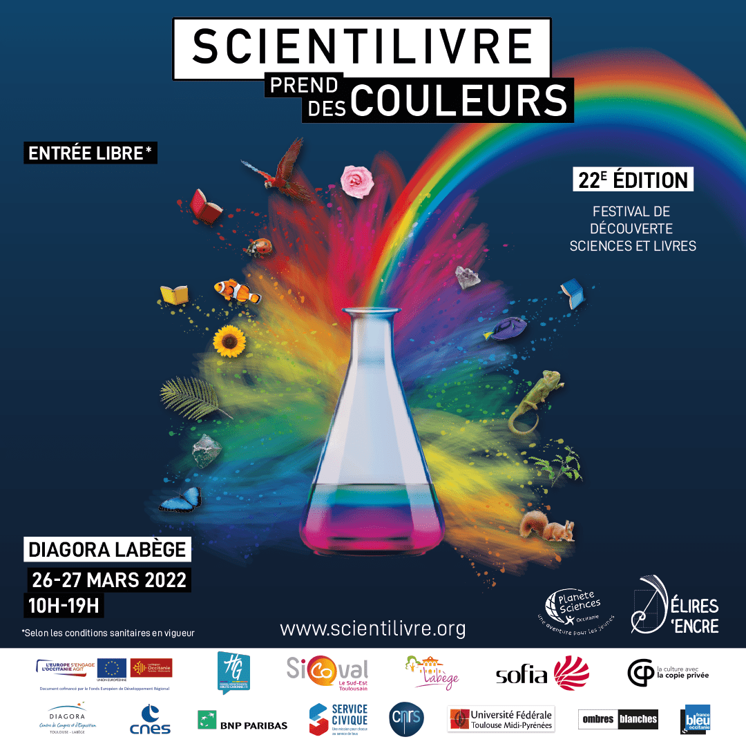 Le festival sera à l’espace Diagora de Labège les 26 et 27 mars 2022 de 10h à 19h. Pour cette nouvelle édition, Scientilivre prend des couleurs !