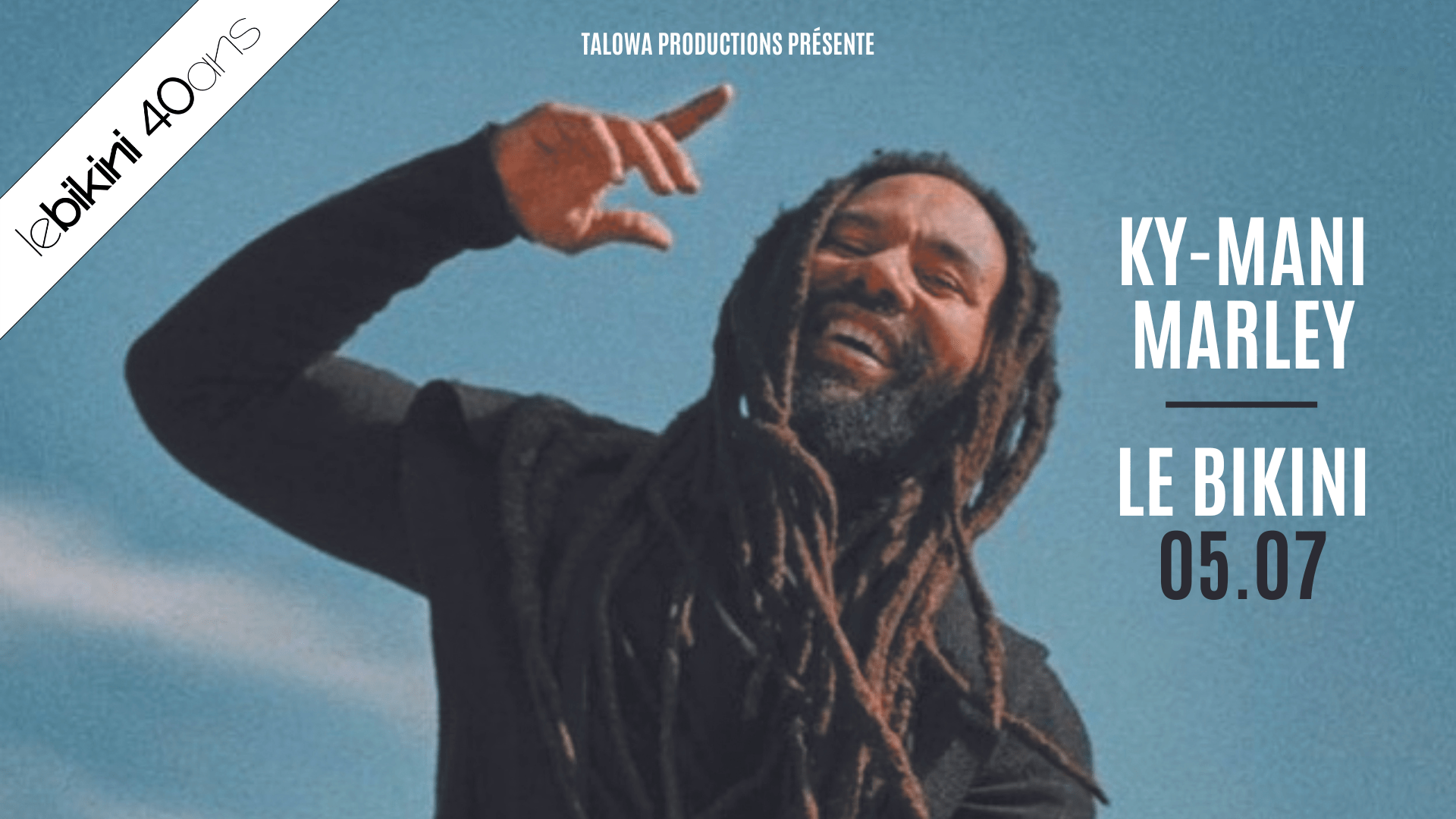 Ky-Mani Marley, fils du légendaire Bob Marley, est de retour en Europe. Il sera présent le 5 juillet à Toulouse pour fêter les 40 ans du Bikini !