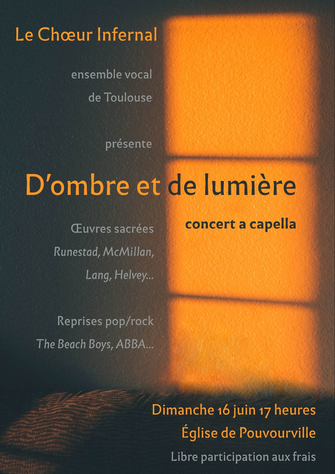 Le Chœur Infernal est en concert le 16 juin 2024 à Pouvourville à 17h! Fondé en 1990, Le Chœur Infernal est un ensemble vocal de Toulouse, à voix mixtes, composé de seize choristes amateurs . Réunis par leur passion du chant sacré, ils explorent aujourd’hui principalement les œuvres les plus contemporaines de ce répertoire.
