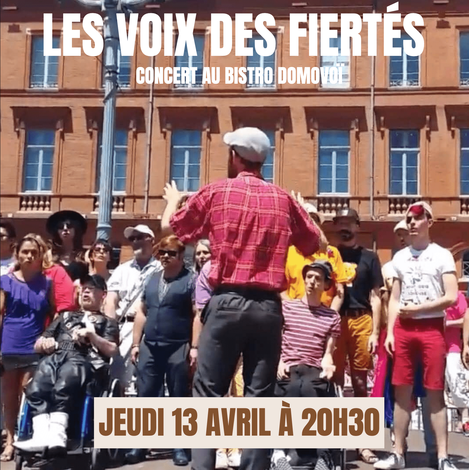 Les Voix des Fiertés sont une chorale LGBT+ qui se veut inclusive et ouverte à tous les niveaux d’expérience : toutes les bonnes volontés sont bienvenues pour chanter nos fiertés partagées. Depuis 2019, leur vocation est de chanter lors des différentes manifestations sociales et culturelles qui touchent la communauté : Marches des Fiertés, cérémonies en hommage aux déporté.e.s LGBT+, journée mondiale de lutte contre le sida, journée internationale des droits des femmes…