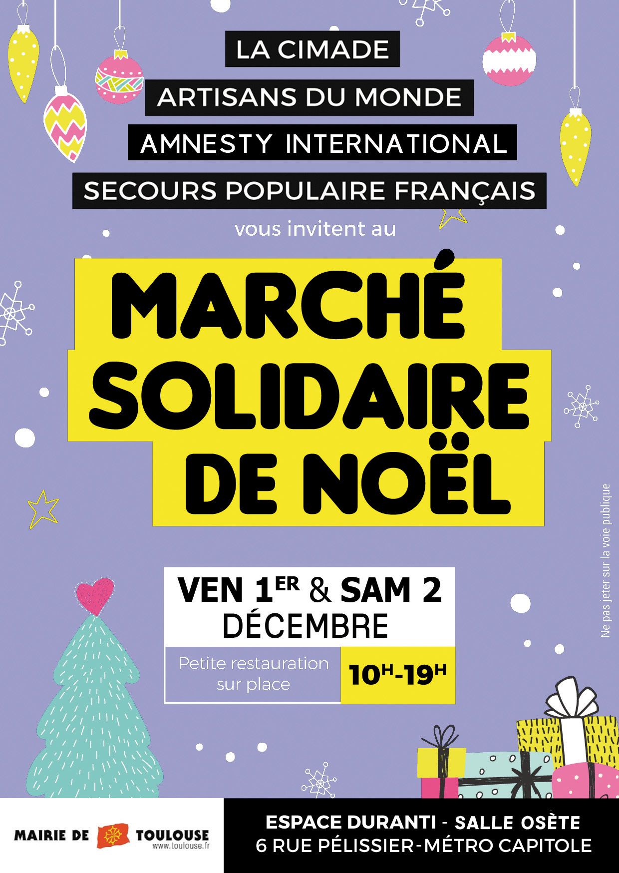 Artisans du Monde, La Cimade, Amnesty International et le Secours populaire s’associent pour organiser la 20ème édition de son traditionnel Marché Solidaire de Noël.