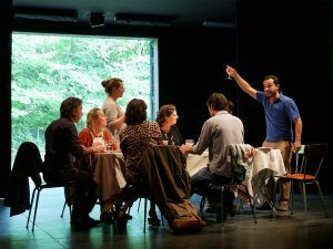 Dans Vania, Tchekhov raconte, au travers d’un huis-clos familial, l’effondrement du monde extérieur et la réponse très « égocentrée » de l’individu qui résiste au changement. Réunis dans la maison familiale, écrin dans lequel on se croise, on se parle, on se dispute, on se quitte et on s’aime, les membres de cette famille russe témoignent, chacun à leur façon, de leur angoisse et de leur impuissance à agir face au bouleversement du monde. Ils se débattent avec leur solitude mais ils le font ensemble, en communauté, dans le lieu familial, autour d’une table. C’est en cela qu’ils nous ressemblent et qu’ils font preuve d’humanité.
