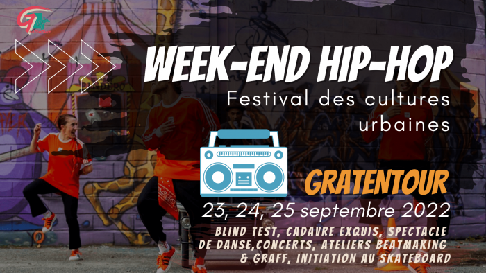 Le Hip-Hop s’invite à Gratentour le temps d’un week-end. Le service culturel, la Maison Des Jeunes de Gratentour, l’école de danse Corps & Graphie et bien d’autres professionnels du spectacle s’unissent pour vous faire découvrir ou redécouvrir les cultures urbaines sous (presque) toutes leurs formes !