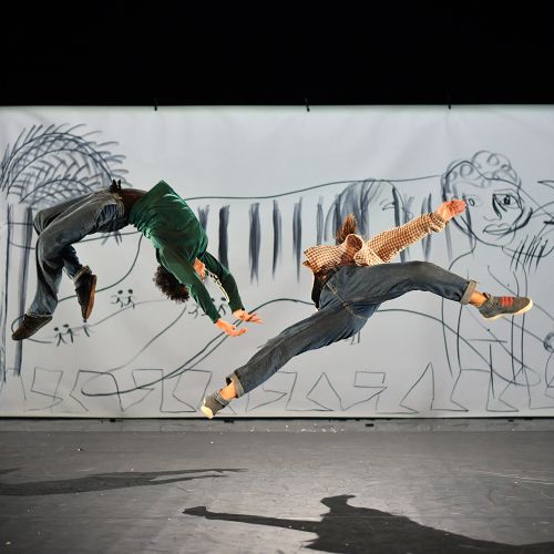 Par le biais d’une fresque géante exécutée en direct par une acrodanseuse et un acrobate, Je suis Tigre nous parle des réfugié.es. Je suis Tigre met également l’accent sur la simplicité et la facilité qu’ont les enfants à vivre et jouer ensemble, sans se poser de questions sur leurs origines.
