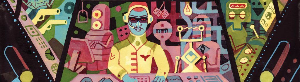 Un vaisseau erre dans l’espace inconnu. À son bord, le Capitaine et son équipage de robots : Robot-Factotum, RobotPistolero, Robot Coup-de-pied-auxfesses, Robot Oui-et-non, le Cosmotraducteur Cosmo-universel…