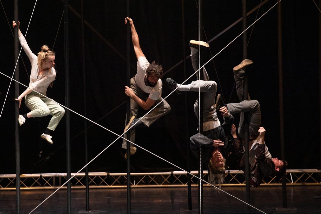 Deux / Après-midi, consacré au partage d’éléments de langage du collectif sous le manteau, portant sur la collaboration et l’interdépendance des corps sur et entre les mâts.