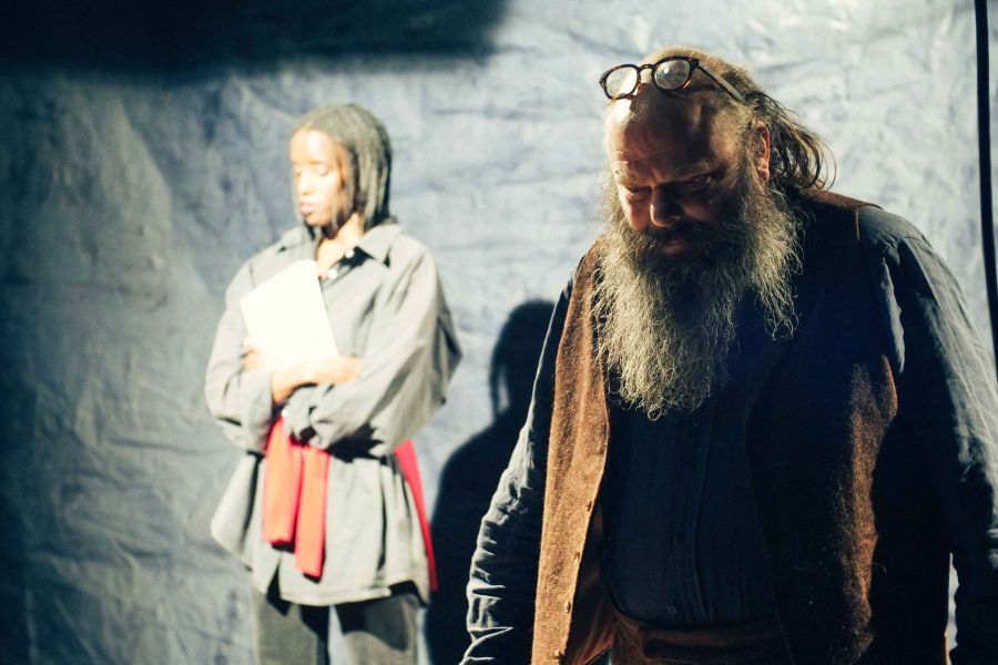 Tg STAN montent pour la troisième fois une pièce de Jon Fosse, Rambuku, publiée en 2006. Au plateau, Kayije Kagame ainsi que les deux acolytes, Matthias de Koning et Damiaan De Schrijver. Une femme et un homme âgé.es attendent, entre immobilisme et mutisme : ils sont en partance pour Rambuku. Là-bas, dans ce nulle part rêvé et lointain, tout est en mouvement, on y entend des chants « chantés par des voix si claires et légères », les grands arbres « s’agitent sous le vent », il y a des vagues « comme des nuages », la souffrance n’est plus. Rambuku, c’est un être au monde, on y voit tout sous la lumière éclatante et on y entend tout car l’écoute est unique, une délivrance absolue. Rambuku, c’est aussi un personnage augural, le seul avec lequel il y aura un échange, c’est un amour perdu retrouvé. Il est La Traversée de chair. Jon Fosse soumet l’écriture à un traitement de répétitions/variations, telle une composition musicale.