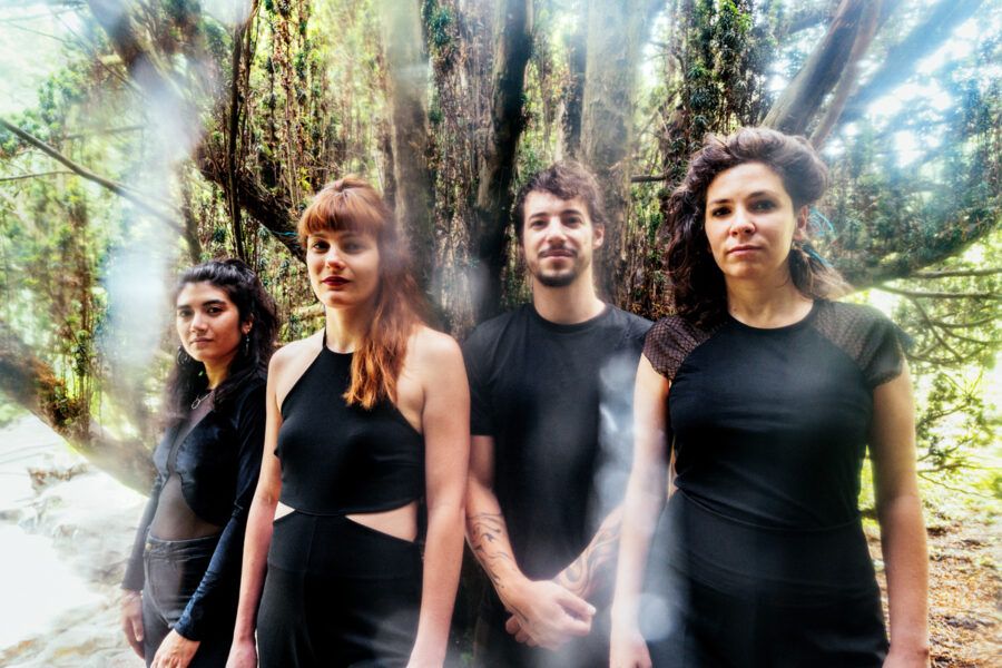 Formé de Clémence Lagier et Valeria Vitrano au chant et aux effets, Maya Cros aux synthés et Dimitri Kogane à la batterie, INUI fonctionne comme un ensemble soudé. Chaque musicien, tout en gardant son identité, contribue à une écriture collective du son. Le jeu des voix est au centre de cette proposition. Il varie du duel vocal à la fusion polyphonique, oscillant entre intensités dynamiques et passages plus méditatifs. Les voix s’entrelacent, se répondent, se confrontent parfois, dans des dynamiques qui construisent une tension émotionnelle continue et stimulante. La présence d’une basse synthétique constante et d’une batterie qui soulève son rythme apporte une assise rythmique solide à ces constructions vocales.