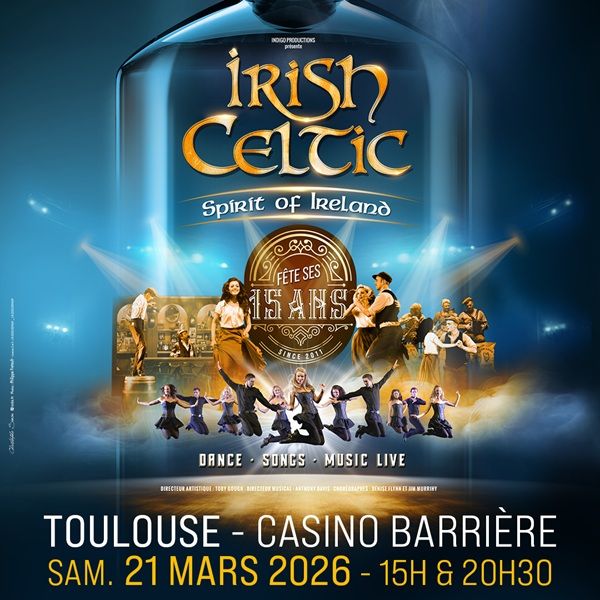 Le Casino Barrière Toulouse accueille Irish Celtic Spirit of Ireland ,le samedi 21 mars 2026. Un spectacle mêlant danse, musique live et récit. Inspirée de la culture populaire irlandaise et de ses traditions, cette production propose une immersion dans un univers de pubs, de légendes et de transmission, portée par une troupe de danseurs et musiciens.