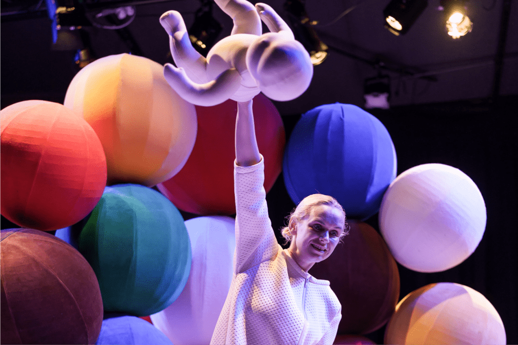 « Little Worlds » n’est pas un spectacle ordinaire. Dès l’entrée, les jeunes spectateurs et leurs parents sont invités à se rassembler autour d’une structure de balles colorées, immense aux yeux des enfants. Ce décor fascinant est le point de départ d’une performance chorégraphique et marionnettique où les enfants peuvent explorer l’espace scénique. Cette liberté de mouvement permet aux tout-petits de s’immerger pleinement dans l’univers du spectacle, interagissant avec le décor et les artistes interprètes.