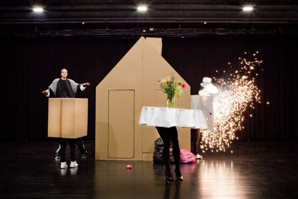 L’artiste belge Miet Warlop, connue pour ses propositions plastiques et performatives, fait interagir ces objets du quotidien d’une manière qui mêle gag visuel, théâtre d’objets et physique presque cartoon. Si les situations amusent d’abord par leur légèreté et leur inventivité. Une inquiétude subtile s’installe progressivement, comme si la scène devenait un miroir de notre propre désordre intérieur.