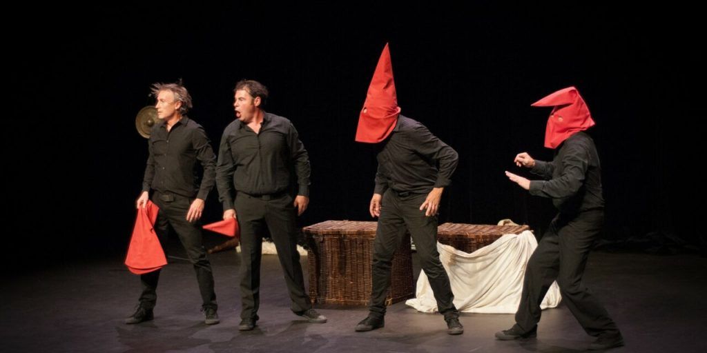 Le spectacle revisite les grandes étapes de l’histoire du théâtre, de la préhistoire jusqu’à l’époque contemporaine, en passant par l’Antiquité et la Renaissance. Les styles se succèdent alors dans une succession de tableaux rythmés. Résultat : la pièce propose une forme de voyage théâtral, à la fois pédagogique et ludique. Derrière le burlesque et l’humour physique se cache une réflexion simple : le théâtre est avant tout un rite collectif, un moment partagé entre acteurs et spectateurs.