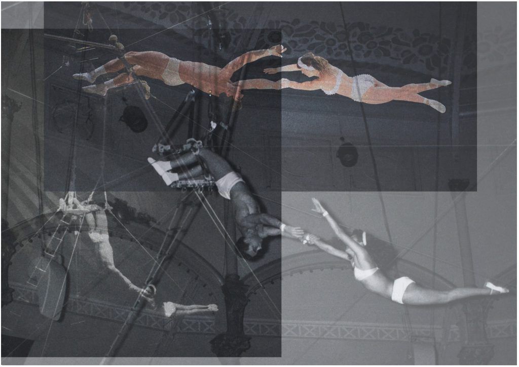 Au centre du projet, une femme : Suzanne Marcaillou. Ancienne artiste de cadre aérien, elle présentait avec son mari Roger le duo Les Antinoüs, qui parcourut le monde entre la fin des années 1940 et le milieu des années 1960. Après cette folle aventure, Roger est devenu taxi et Suzanne, secrétaire dans de grands hôtels de la Ville rose. Les archives de leurs tournées ont alors fini au grenier d’un immeuble toulousain, que le couple n’a jamais quitté. Aujourd’hui, ces témoignages du passé, complétés par des archives glanées par Anna Tauber, resurgissent sur scène.